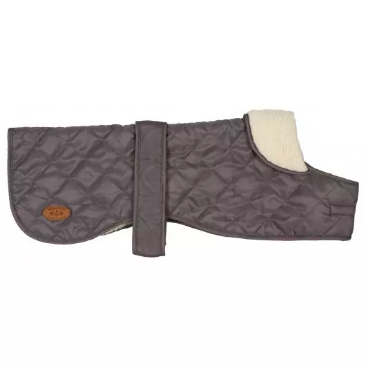 Fully waterproof for showers, and padded and lined with faux sheep lining for chilly mornings, this chic grey dog jacket is fully adjustable, machine washable and available in four sizes.