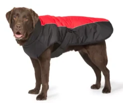 A dog coat perfect for active dogs who love the outdoors. This sports coat has a luxury feel with thermal padding for warmth, full chest protection, and embroidered paw logo.