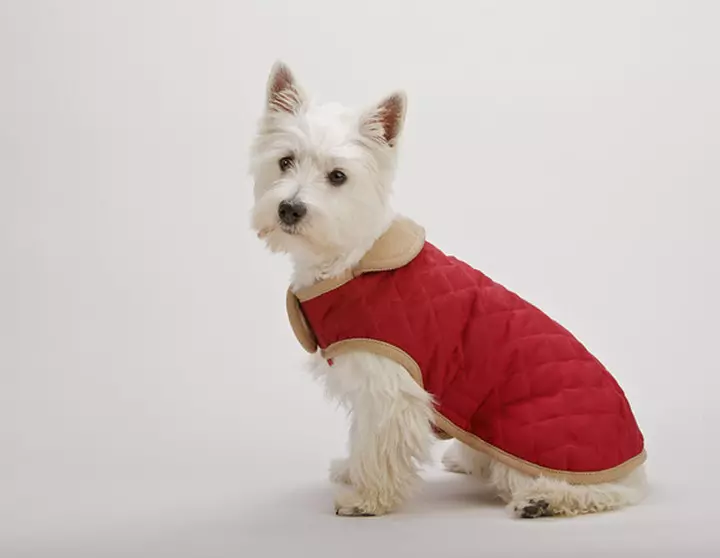 Nanosuede Quilted Jacket. 100% soft microfiber suede outer shell. Fleece lining for comfort and warmth. Full chest and belly protection keeps your dog warm and dry.