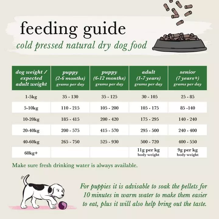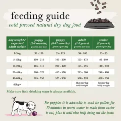 As cold pressed food is nutritionally denser a dog requires less per portion.​