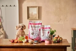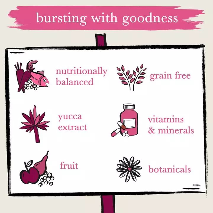 The ingredients are gently cold pressed to produce delicious, easily digestible, grain free, dry food that’s great for your four-legged friend’s gut health.