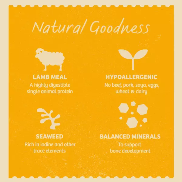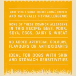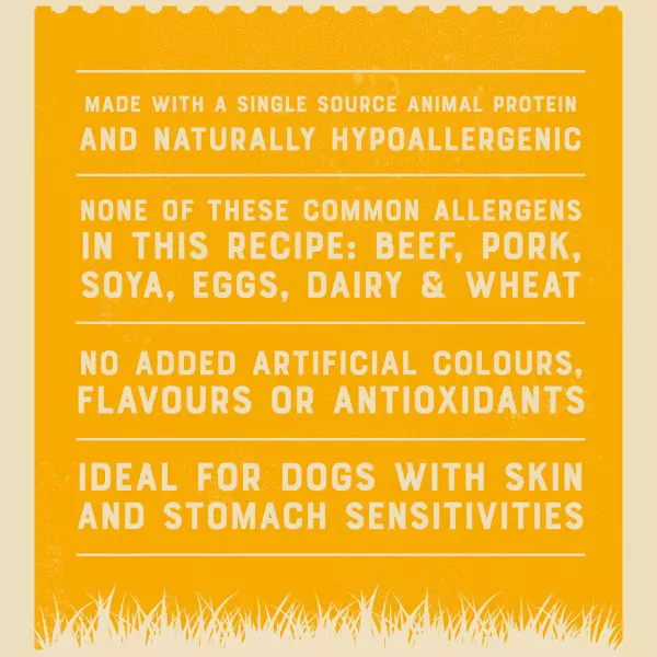 Using only simple ingredients and inspired by nature, our dog food has all the goodness they need and nothing they dont. And, to minimise the risk of adverse food reactions, its naturally hypoallergenic.