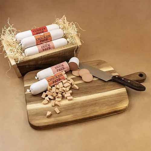 - Unique firm pate like texture ideal for stuffing kongs/toys but firm enough to cube and use as training treats