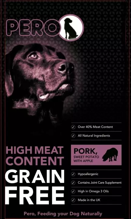 Pero Grain Free Pork & Sweet Potato with Apple is a complete balanced diet for adult dogs. It contains over 40% farm raised pork along with highly digestible sweet potato as the primary carbohydrate. This hypoallergenic recipe is especially suited to dogs with grain allergies or sensitive digestive systems.