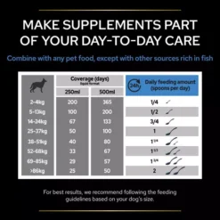 Should not be given to dogs under 2 kg. Should not be given with other sources rich in fish.