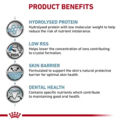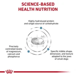 ROYAL CANIN® Canine Hypoallergenic Small Dogs’ low RSS (relative supersaturation) encourages an undersaturated urinary environment, lessening the likelihood of struvite and calcium oxalate crystal formation and supporting urinary health. ROYAL CANIN® Canine Hypoallergenic Small Dogs also helps to support the natural protective barrier role of your dog’s skin. The kibble in ROYAL CANIN® Canine Hypoallergenic Small Dogs includes specific nutrients that contribute to maintaining your dog’s good oral health.