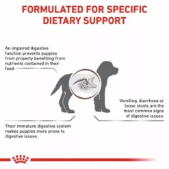 For puppies less than 12 months of age with acute and chronic diarrhoea, maldigestion, malabsorption, Small Intestinal Bacterial Overgrowth (SIBO), re-feeding after surgery, colitis, gastritis, Inflammatory Bowel Disease (IBD), Exocrine Pancreatic Insufficiency (EPI), inappetance.