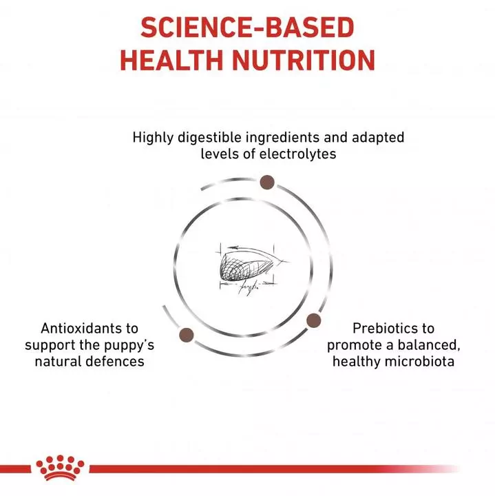 Combination of highly digestible proteins (L.I.P.* proteins), prebiotics, sugar beet pulp, rice and fish oil to ensure maximum digestive security.|A high energy density fulfils puppies’ growth energy requirements while helping reduce the amount of food given per meal, decreasing the digestive workload.|Puppies with digestive disorders can be weak and their appetite reduced. Junior kibbles are adapted in size, texture and shape and are easily rehydrated, encouraging food intake.|Formulated to take into account the nutritional needs of growing puppies.
