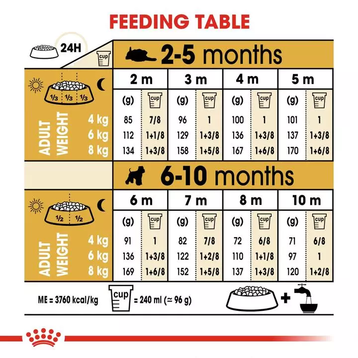 ROYAL CANIN® Miniature Schnauzer Puppy also contains combination of nutrients with high quality protein and prebiotics to support digestive health and maintain an optimal balance of intestinal flora, which ultimately contributes to good stool quality. The exclusive formulation of kibble in ROYAL CANIN® Miniature Schnauzer Puppy is designed specially to help support dental health by reducing tartar formation, thanks to the inclusion of calcium chelators. At ROYAL CANIN® we’re committed to providing nutritional solutions to your pet’s needs. All of our products undergo an extensive quality control process in order to guarantee the optimum quality of food as well as catering to your puppy’s specific dietary requirements and lifestyle. This means that when your puppy eats ROYAL CANIN® Miniature Schnauzer Puppy, it’s getting a complete and balanced diet.