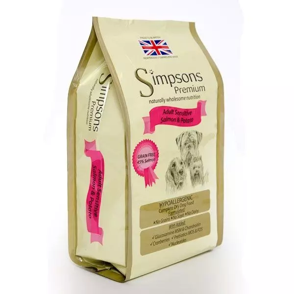 | Ingredients | Salmon (min 45% – Deboned Salmon, Dried Salmon), Potato (min 32%), Sunflower Oil, Beet Pulp, Dried Egg, Brewers Yeast, Salmon Stock, Salmon Oil, Linseeds, Minerals, Vitamins, Yucca Extract, Cranberries, nucleotides, Mannanoligosaccharides (MOS), Fructooligosaccharides (FOS), Glucosamine, MSM, Chondroitin. Naturally preserved with mixed tocopherols |