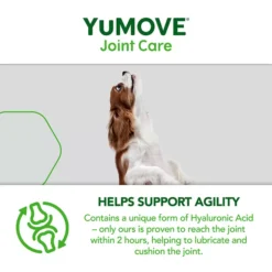 YuMOVE’s unique form of ActivEase® Green Lipped Mussel (GLM) contains higher levels of Omega-3 fatty acids than other standard GLM powders. It’s a similar story with Hyaluronic Acid. YuMOVE’s particular version is proven to reach your dog’s joints within just 2 hours. Combined, the unique ingredients in YuMOVE deliver the optimal recipe to aid stiff joints.