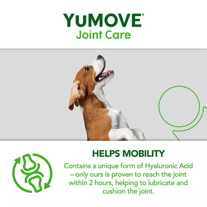 YuMOVE’s unique form of ActivEaseยฎ Green Lipped Mussel (GLM) contains higher levels of Omega-3 fatty acids than other standard GLM powders. It’s a similar story with Hyaluronic Acid. YuMOVE’s particular version is proven to reach your dogโs joints within just 2 hours. Combined, the unique ingredients in YuMOVE deliver the optimal recipe to aid stiff joints.